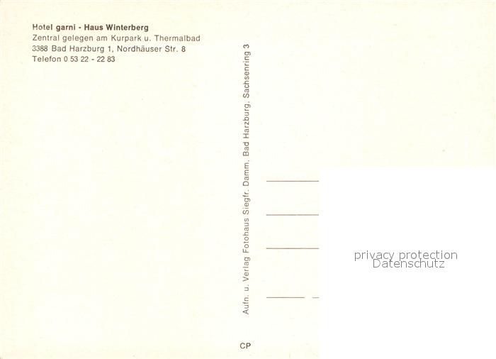 73171399 Bad Harzburg Hotel garni Haus Winterberg postalisch nicht gelaufen Erhaltung siehe scans [FriedD77] KatCode: 11110003153002