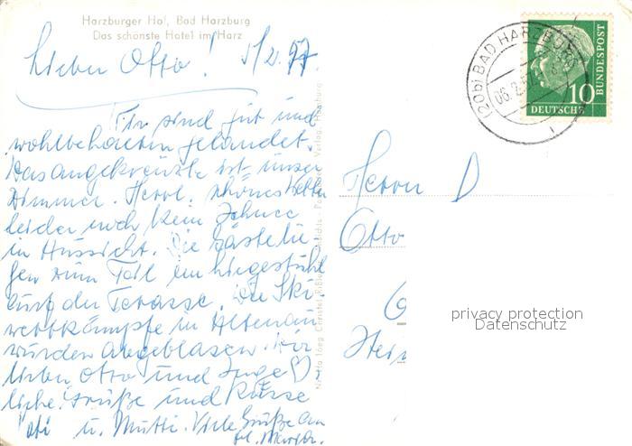 72938966 alte Postkarte Bad Harzburg Hotel Harzburger Hof postalisch gelaufen Erhaltung siehe scans [FriedD77] KatCode: 11110003153002