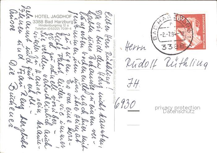71991847 alte Postkarte Bad Harzburg Hotel Jagdhof postalisch gelaufen Erhaltung siehe scans KatCode: 11110003153002
