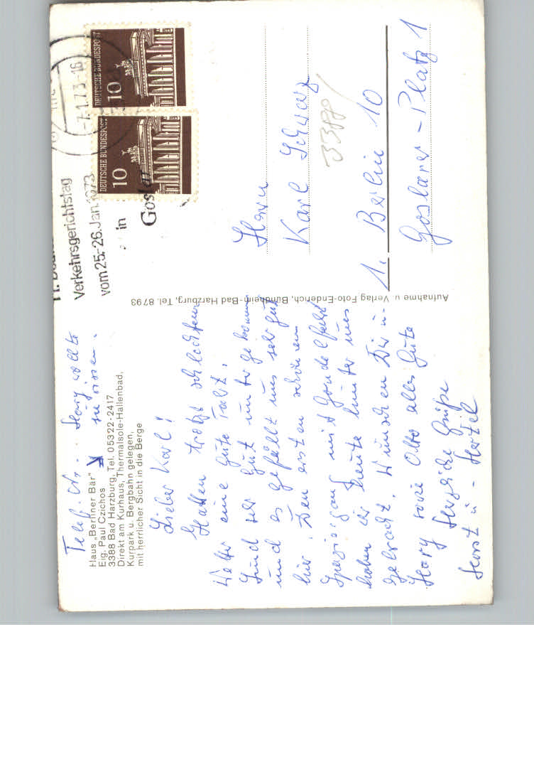31168122 Bad Harzburg Hotel – Pension Berliner Baer postalisch nicht gelaufen KatCode: 11110003153002