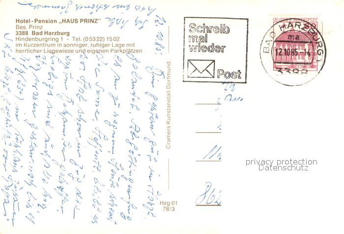 73686116 alte Postkarte Bad Harzburg Hotel Pension Haus Prinz postalisch gelaufen Erhaltung siehe scans [WerneD78] KatCode: 11110003153002