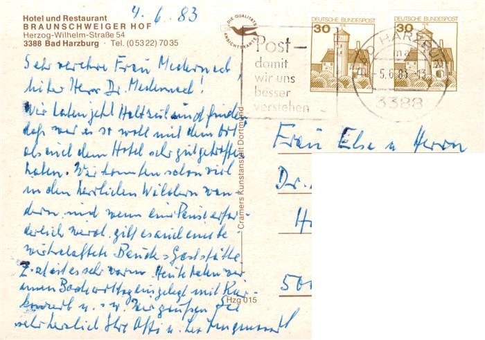 73887886 alte Postkarte Bad Harzburg Hotel Restaurant Braunschweiger Hof postalisch gelaufen Erhaltung siehe scans [WerneD78] KatCode: 11110003153002