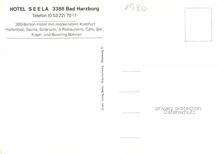 72893034 Bad Harzburg Hotel Seela postalisch nicht gelaufen Erhaltung siehe scans [LiesaD40] KatCode: 11110003153002