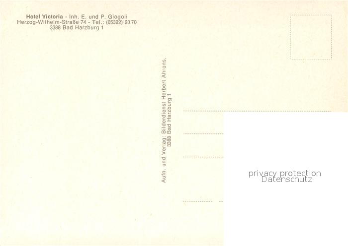 73615893 Bad Harzburg Hotel Victoria postalisch nicht gelaufen Erhaltung siehe scans [WerneD78] KatCode: 11110003153002