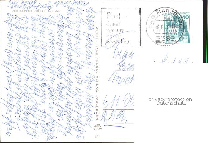 72182551 alte Postkarte Bad Harzburg Juliusbad postalisch gelaufen Erhaltung siehe scans KatCode: 11110003153002