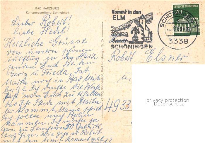 72781718 alte Postkarte Bad Harzburg Kunstausstellung Sonnenhof postalisch gelaufen Erhaltung siehe scans [FriedD77] KatCode: 11110003153002