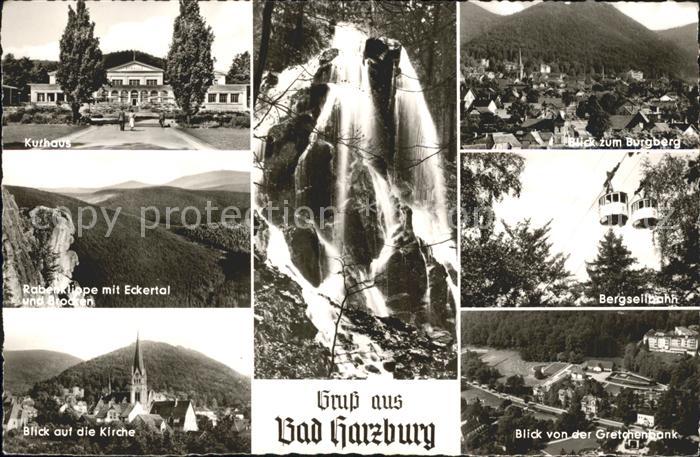 72061596 Bad Harzburg Kurhaus Burgberg Rabenklippe Eckertal Brocken Bergseilbahn Kirche Blick von der Gretchenbank postalisch nicht gelaufen Erhaltung siehe scans KatCode: 11110003153002