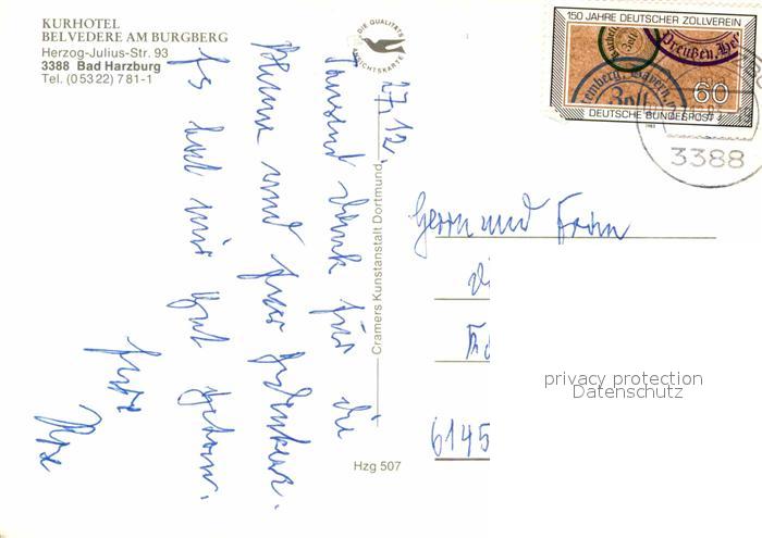 72781216 alte Postkarte Bad Harzburg Kurhotel Belvedere am Burgberg postalisch gelaufen Erhaltung siehe scans [FriedD77] KatCode: 11110003153002