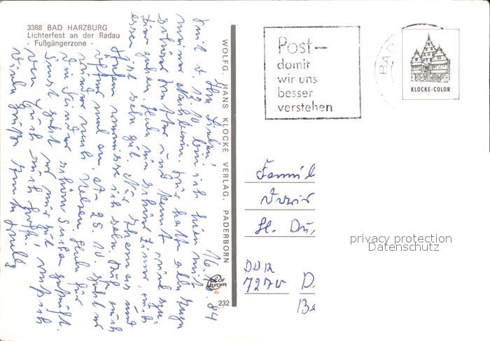 72523273 alte Postkarte Bad Harzburg Lichterfest Radau postalisch gelaufen Erhaltung siehe scans KatCode: 11110003153002