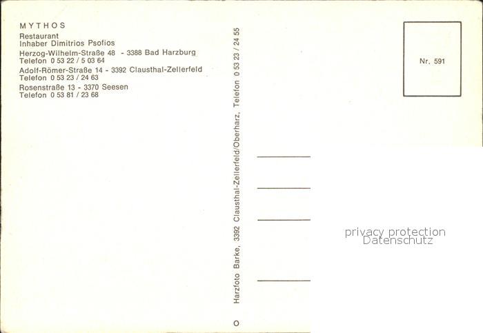 72533596 Bad Harzburg Restaurant Mythos postalisch nicht gelaufen Erhaltung siehe scans [FriedD77 kt118box] KatCode: 11110003153002