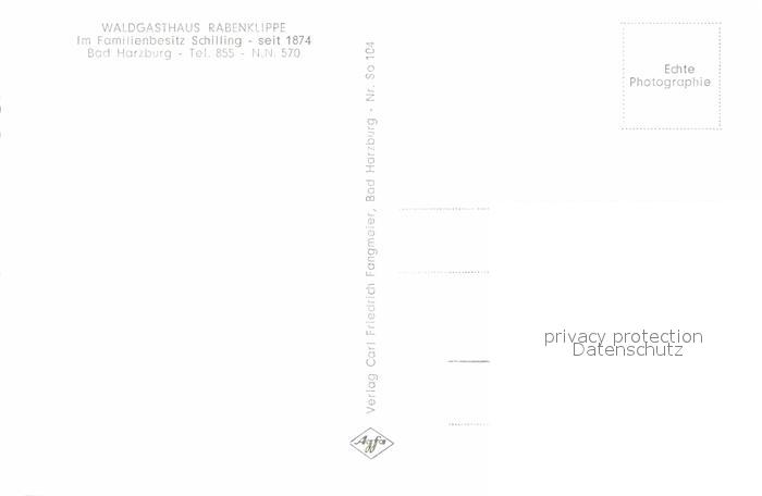 72892407 Bad Harzburg Waldgasthaus Rabenklippe postalisch nicht gelaufen Erhaltung siehe scans [PaolaD17] KatCode: 11110003153002