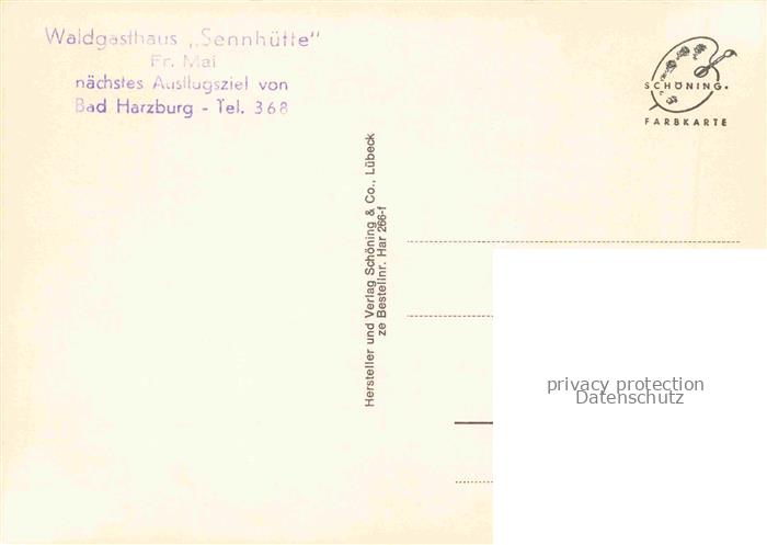 74022560 BAD HARZBURG Waldgasthaus Sennhuette postalisch nicht gelaufen Erhaltung siehe scans [FriedD77] KatCode: 11110003153002
