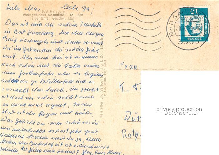 73703884 alte Postkarte Bad Harzburg Waldgasthaus Sennhuette postalisch gelaufen Erhaltung siehe scans [FriedD77] KatCode: 11110003153002
