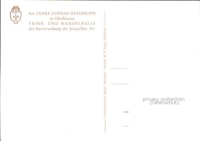 72256960 Bad Heilbrunn 800 Jahre Jodbad Trinkhalle Wandelhalle postalisch nicht gelaufen Erhaltung siehe scans KatCode: 11110009173111