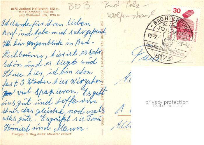 73019427 alte Postkarte Bad Heilbrunn Blomberg Stallauer Eck postalisch gelaufen Erhaltung siehe scans [NatalD47] KatCode: 11110009173111