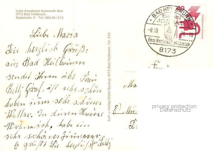 73829389 alte Postkarte Bad Heilbrunn Cafe Konditorei Kuemmeth Beil postalisch gelaufen Erhaltung siehe scans [FriedD77] KatCode: 11110009173111