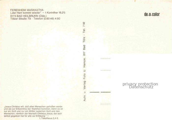 74040673 Bad Heilbrunn Ferienheim Maranatha Garten postalisch nicht gelaufen Erhaltung siehe scans [FriedD77] KatCode: 11110009173111
