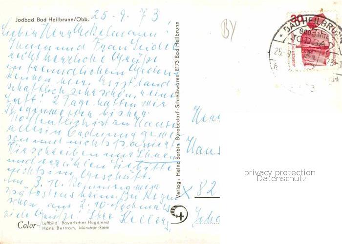 72675645 alte Postkarte Bad Heilbrunn Fliegeraufnahme postalisch gelaufen Erhaltung siehe scans [WerneD78] KatCode: 11110009173111