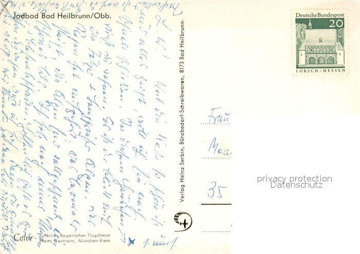 73686117 alte Postkarte Bad Heilbrunn Fliegeraufnahme postalisch gelaufen Erhaltung siehe scans [WerneD78] KatCode: 11110009173111