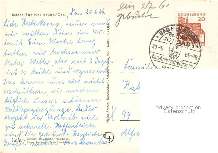 73656266 alte Postkarte Bad Heilbrunn Fliegeraufnahme postalisch gelaufen Erhaltung siehe scans [WerneD78] KatCode: 11110009173111