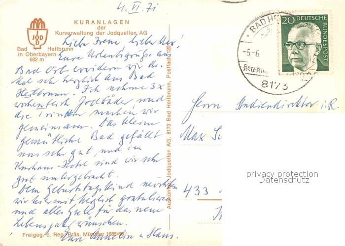 72856691 alte Postkarte Bad Heilbrunn Fliegeraufnahme Kuranlagen postalisch gelaufen Erhaltung siehe scans [LiesaD40] KatCode: 11110009173111