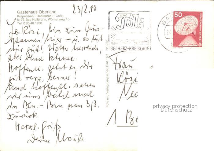 72261967 alte Postkarte Bad Heilbrunn Gaestehaus Oberland Kurpension Restaurant postalisch gelaufen Erhaltung siehe scans KatCode: 11110009173111