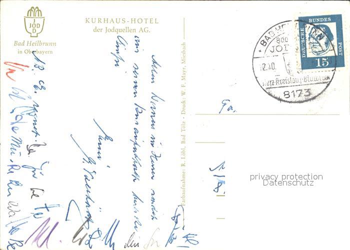 72260944 alte Postkarte Bad Heilbrunn Kurhaus-Hotel postalisch gelaufen Erhaltung siehe scans KatCode: 11110009173111