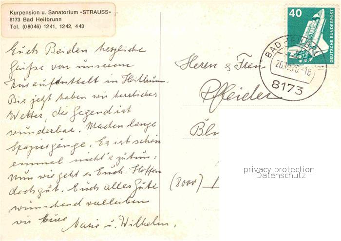 72824269 alte Postkarte Bad Heilbrunn Kurpension Sanatorium Strauss postalisch gelaufen Erhaltung siehe scans [FriedD77] KatCode: 11110009173111