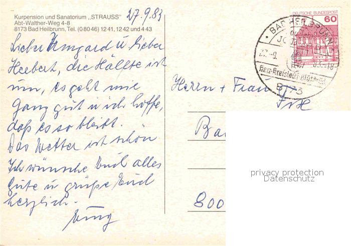 72878668 alte Postkarte Bad Heilbrunn Kurpension Sanatorium Strauss postalisch gelaufen Erhaltung siehe scans [FriedD77] KatCode: 11110009173111