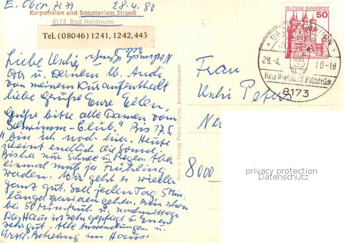 73650016 alte Postkarte Bad Heilbrunn Kurpension und Sanatorium Strauss postalisch gelaufen Erhaltung siehe scans [WerneD78] KatCode: 11110009173111
