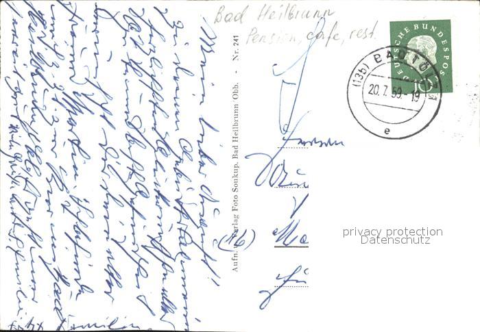 72467625 alte Postkarte Bad Heilbrunn Pension Cafe Restaurant postalisch gelaufen Erhaltung siehe scans KatCode: 11110009173111