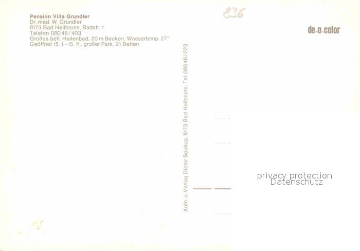 72670115 Bad Heilbrunn Pension Villa Grundler postalisch nicht gelaufen Erhaltung siehe scans [LiesaD40] KatCode: 11110009173111
