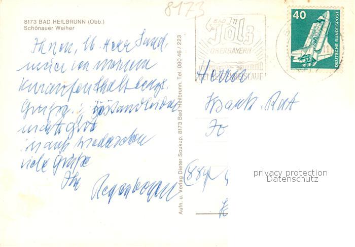 73120199 alte Postkarte Bad Heilbrunn Schoenauer Weiher postalisch gelaufen Erhaltung siehe scans [KathaD81] KatCode: 11110009173111