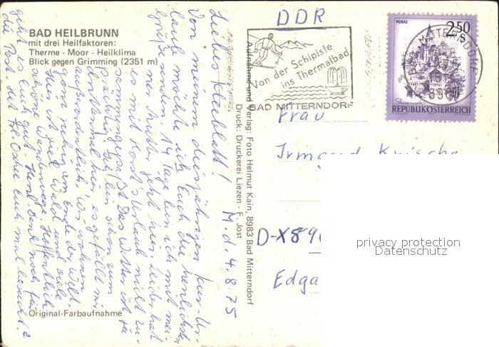 alte Postkarte Bad Heilbrunn Thermalbad mit Grimming postalisch gelaufen Erhaltung siehe scans