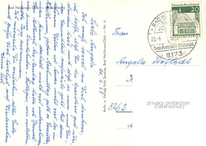 73163438 alte Postkarte Bad Heilbrunn Wandelhalle postalisch gelaufen Erhaltung siehe scans [WerneD78] KatCode: 11110009173111