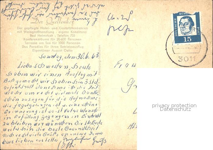 72420749 alte Postkarte Bad Helmstedt Fliegeraufnahme Der Quellenhof postalisch gelaufen Erhaltung siehe scans KatCode: 11110003154010