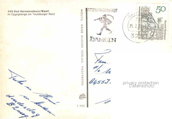 72788047 alte Postkarte Bad Hermannsborn Historisches Kurhaus Brunnenanlage Schwanenteich Park postalisch gelaufen Erhaltung siehe scans [FriedD77] KatCode: 11110005762004