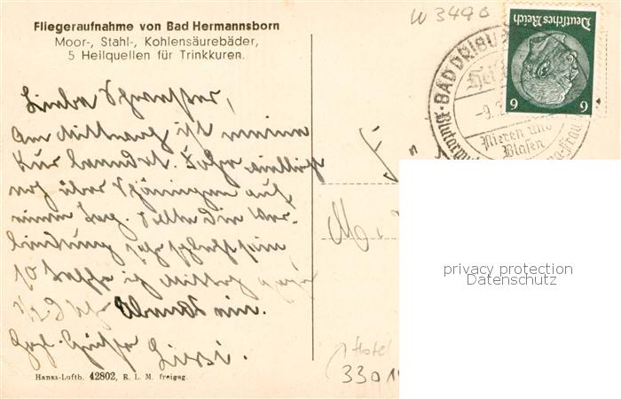 73803074 alte Postkarte Bad Hermannsborn Kuranlagen Fliegeraufnahme postalisch gelaufen Erhaltung siehe scans [FriedD77] KatCode: 11110005762004
