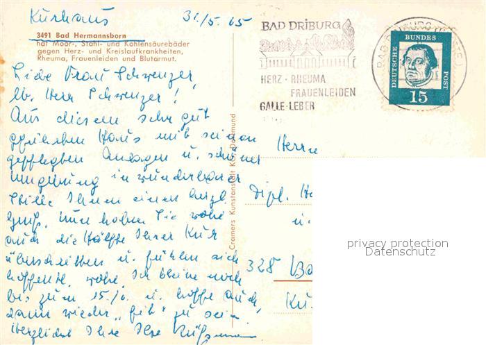 72848785 alte Postkarte Bad Hermannsborn Kurhaeuser Pavillon Park Teich postalisch gelaufen Erhaltung siehe scans [FriedD77] KatCode: 11110005762004