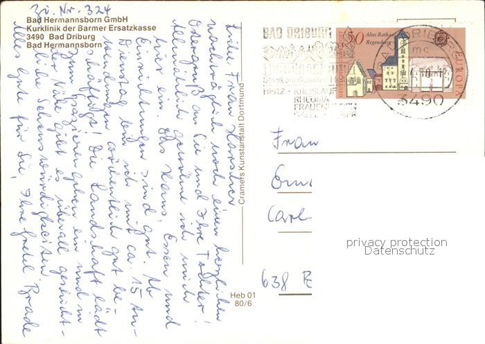alte Postkarte Bad Hermannsborn Kurklinik der Barmer Ersatzkasse Park Teich postalisch gelaufen Erhaltung siehe scans