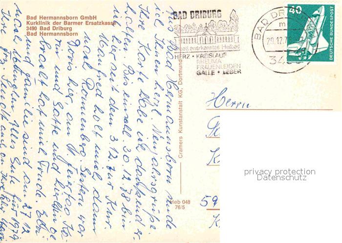 72692288 alte Postkarte Bad Hermannsborn Kurklinik der Barmer Ersatzkasse Restaurant postalisch gelaufen Erhaltung siehe scans [FriedD77] KatCode: 11110005762004