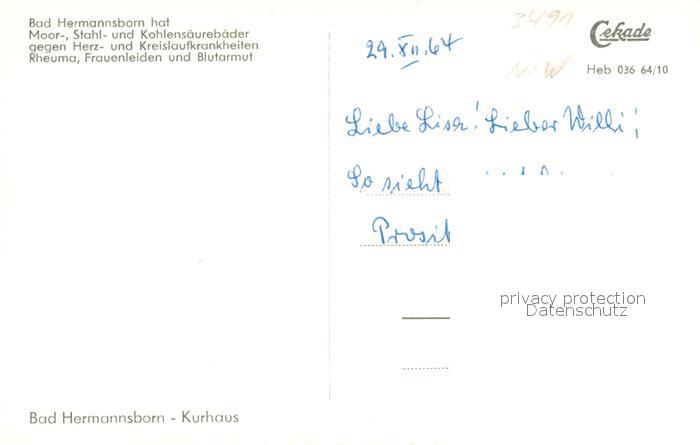 43342780 Bad Hermannsborn Moor Stahl und Kohlensaeurebad postalisch nicht gelaufen Erhaltung siehe scans [WerneD78] KatCode: 11110005762004