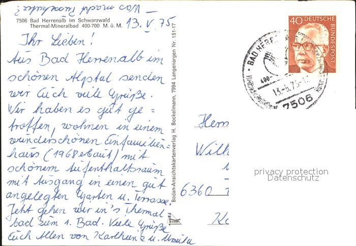 72530781 alte Postkarte Bad Herrenalb postalisch gelaufen Erhaltung siehe scans [LiesaD40 kt094box] KatCode: 11110008235033