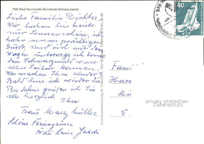 72290134 alte Postkarte Bad Herrenalb postalisch gelaufen Erhaltung siehe scans KatCode: 11110008235033