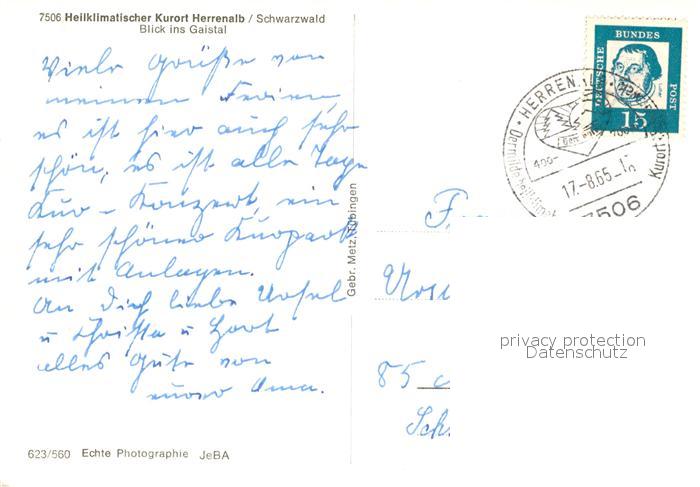 73043739 alte Postkarte Bad Herrenalb Blick ins Gaistal postalisch gelaufen Erhaltung siehe scans [WerneD78] KatCode: 11110008235033