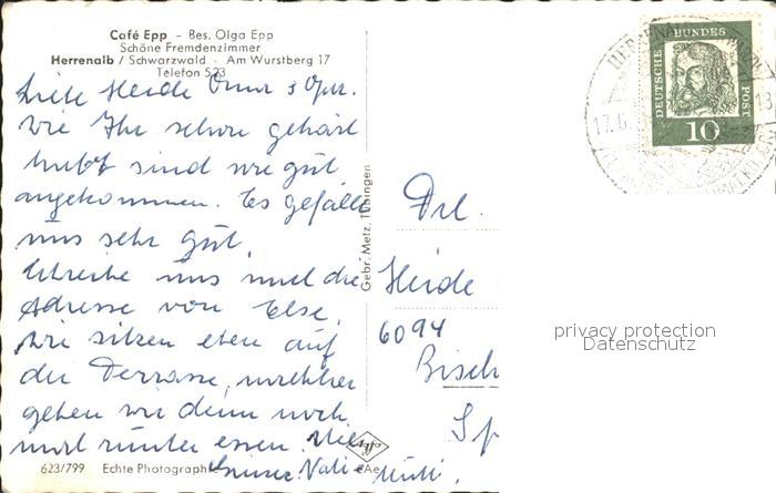 32184314 alte Postkarte Bad Herrenalb Cafe Epp postalisch gelaufen Erhaltung siehe scans KatCode: 11110008235033