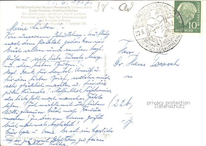 41612825 alte Postkarte Bad Herrenalb Cafe Pension Waldschloesschen postalisch gelaufen Erhaltung siehe scans KatCode: 11110008235033