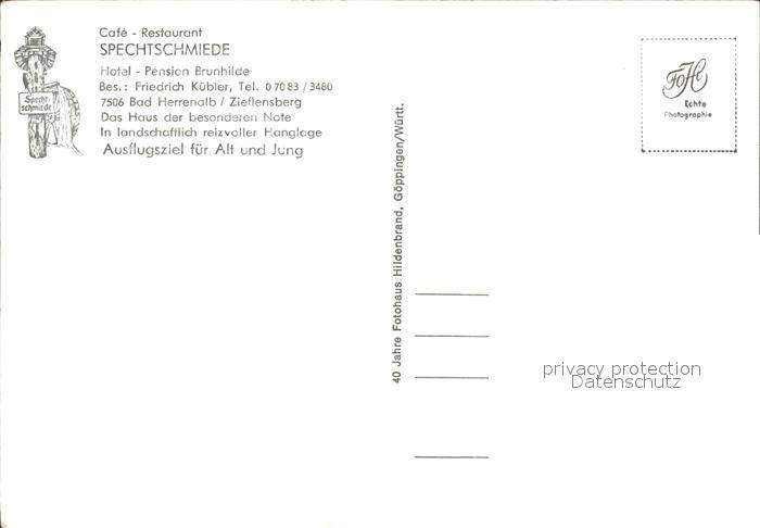 72058379 Bad Herrenalb Cafe Restaurant Spechtschmiede postalisch nicht gelaufen KatCode: 11110008235033