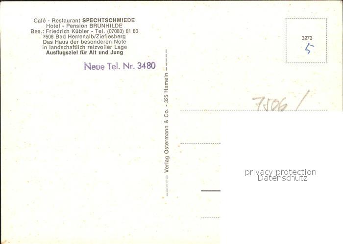 31731451 Bad Herrenalb Cafe Restaurant Spechtschmiede Hotel Brunhilde postalisch nicht gelaufen Erhaltung siehe scans KatCode: 11110008235033