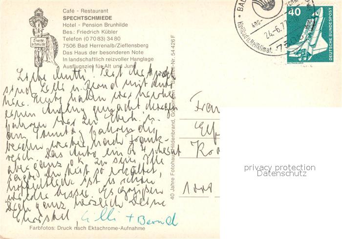 73637764 alte Postkarte Bad Herrenalb Cafe Restaurant Spechtschmiede postalisch gelaufen Erhaltung siehe scans [FriedD77] KatCode: 11110008235033